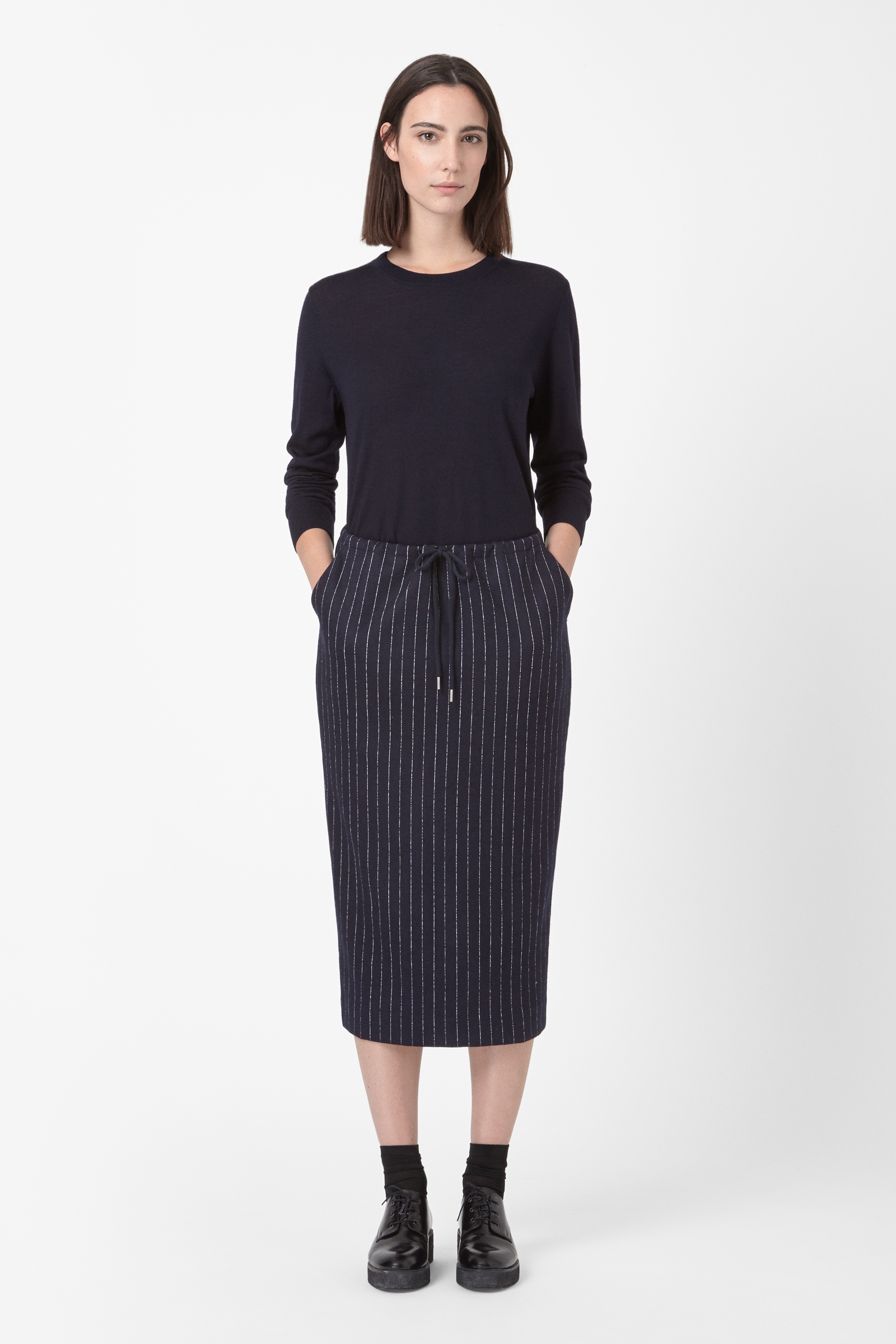 COS PINSTRIPE JERSEY SKIRT navy Published November 6, 2014 at 1600 × 2400 in COS: what they do best COS PINSTRIPE JERSEY SKIRT navy