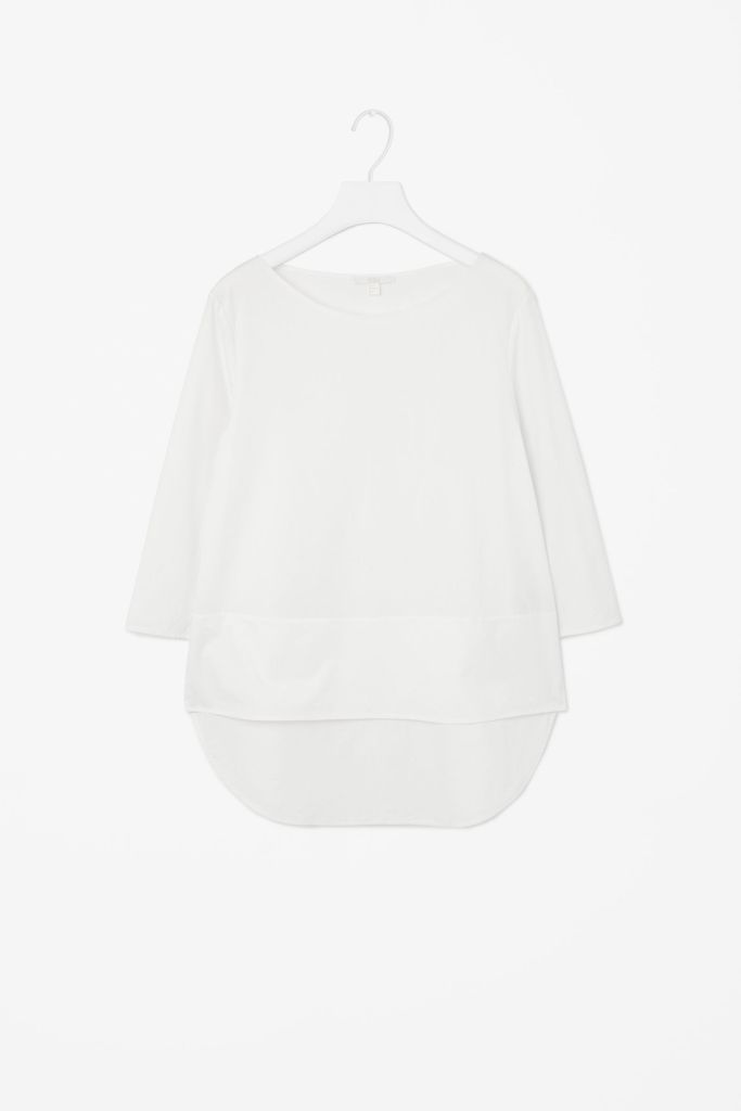 COS LAYERED POPLIN TOP Published April 5, 2015 at 1600 × 2400 in Denim, white and a touch of brown COS LAYERED POPLIN TOP