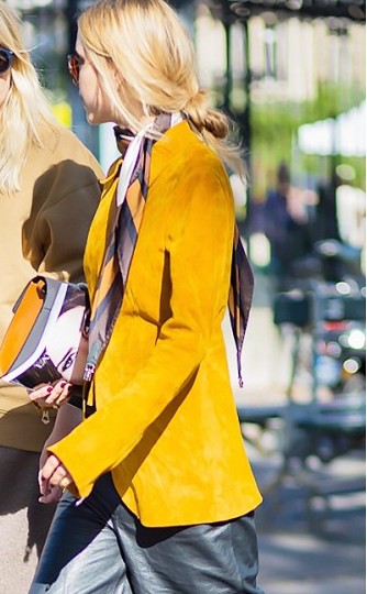 Silk scarf folded and knotted at the side