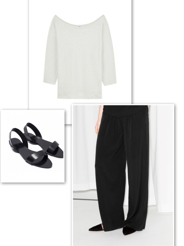 Off shoulder white top with black loose trousers and slides Published April 25, 2015 at 1200 × 1600 in Off shoulder tops