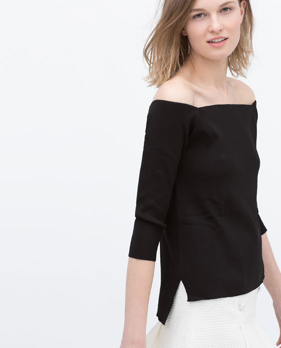 Zara Off-the-shoulder sweater black Published April 25, 2015 at 560 × 694 in Off shoulder tops Zara Off-the-shoulder sweater black