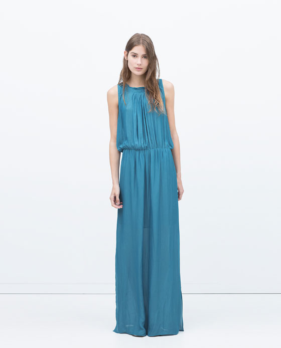 Zara Box pleat dress with bib front detail light petrol blue Published June 12, 2015 at 560 × 694 in Tunic + shorts + flats