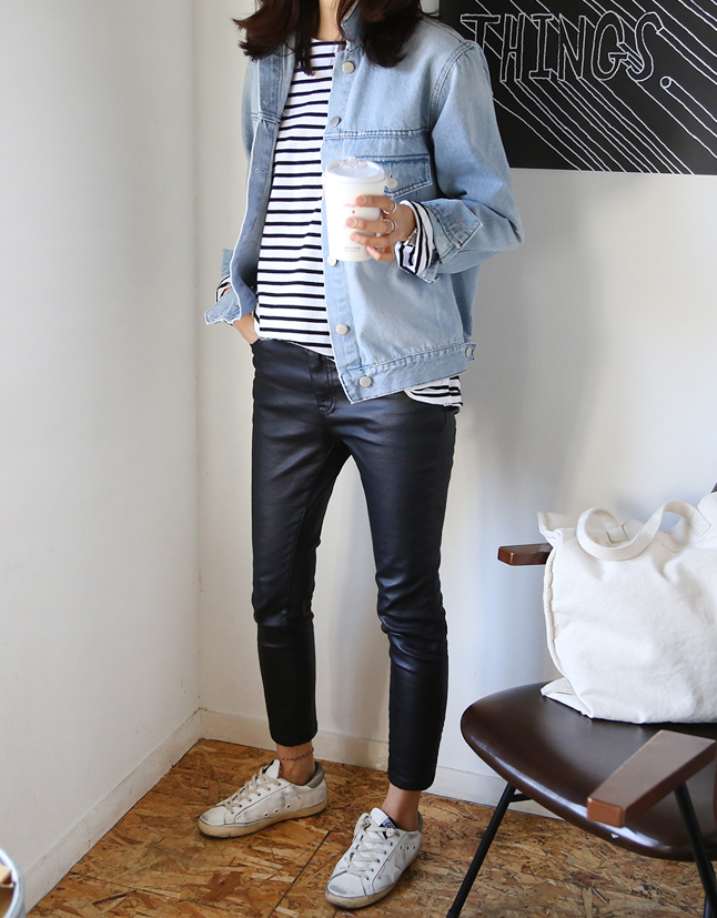 dbe-denim-light-jacket-striped-top-leather-jeans-white-trainers Published September 17, 2016 at 646 × 827 in DBE