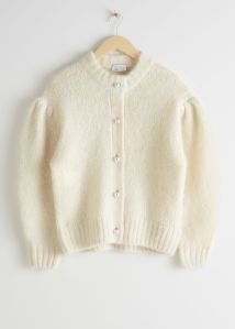 & Other Stories Pearl Button Puff Sleeve Cardigan
