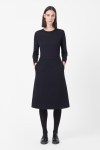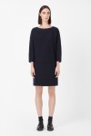 COS CURVED SEAM BOILED WOOL DRESS navy